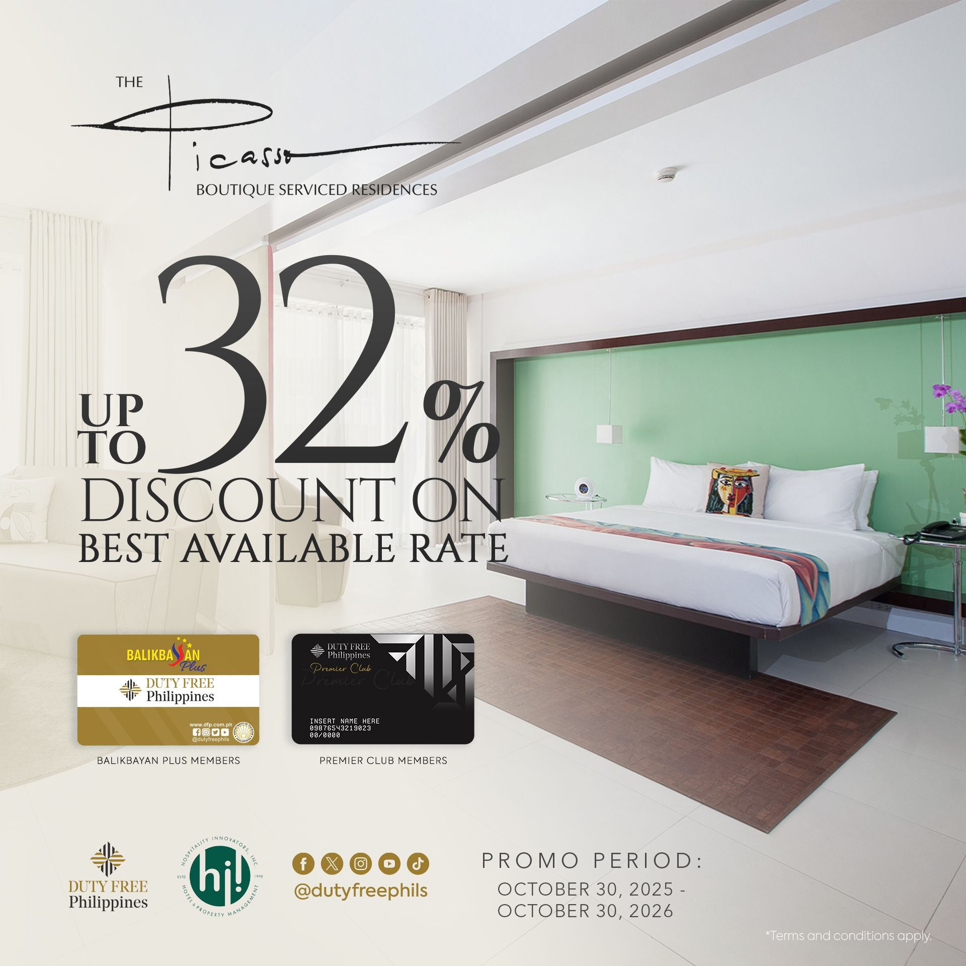 - Upon check-in, members must present a valid (non-expired) Duty Free Philippines Balikbayan Plus or Premier Club Members card to avail of the discounted rate and perks. Without this proof, the regular best available rates will apply.